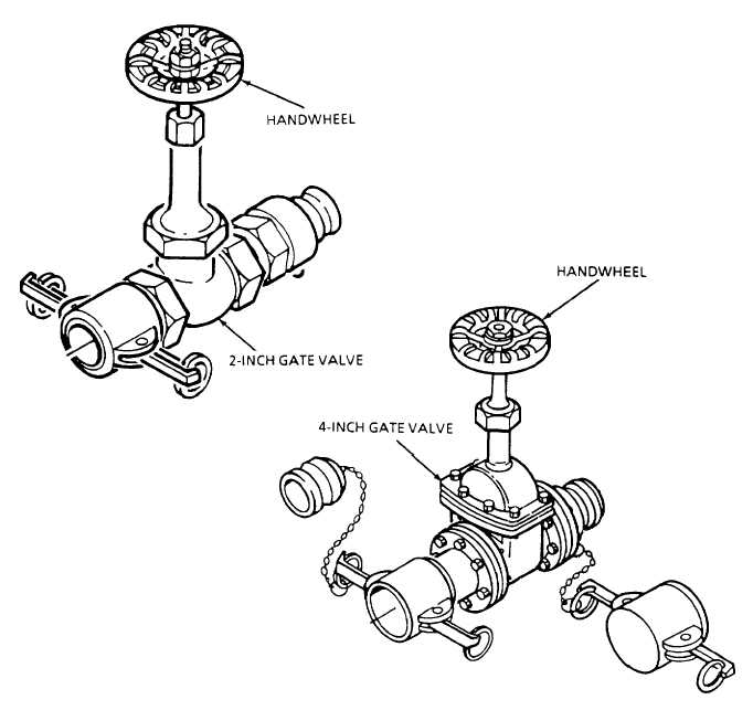 Handwheels on the 4-inch gate valves are used to open or close the valve. Turning the handwheel all the way to the